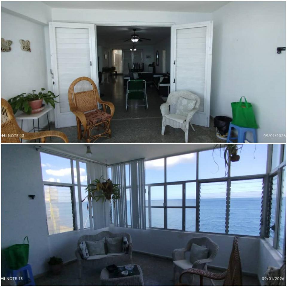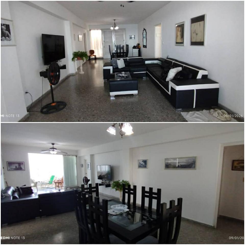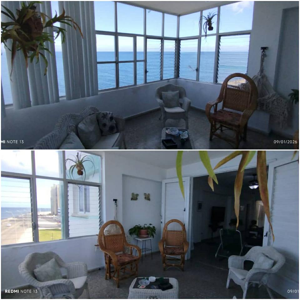 Propiedad horizontal ubicado frente al mar, piso 4,con elevador donde hace parada frente a la puerta de cada propiedad,consta de una terraza frente a la calle con una vista hacia el litoral del malecón y el mar,sala-comedor muy espaciosa ,4 cuartos con sus clóset y 3 baños ( 2 baños dentro de los cuartos y otra intercalado)cocina amplia clara y fresca,su p.servicio con su lavadero,agua fría y caliente, teléfono fijo,gas ,garaje en planta baja del edificio con cada valla p cada p.horizonta ,consta de construcción total 176 .45 mt2. Ubicada en el vedado.