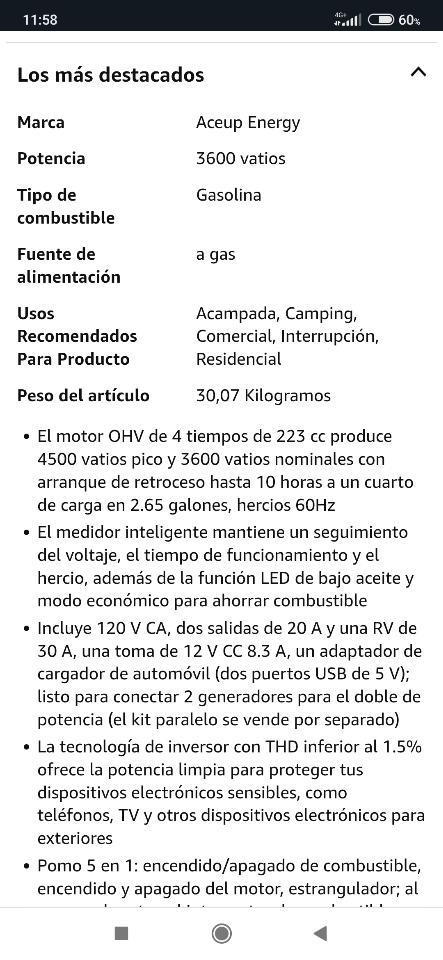 4500 Watts, Generador Eléctrico de Gasolina, Inverter, Bajo Nivel de ruido, 120Volt, Transporte Incluido dependiendo del lugar, WhatsApp 53901217,$780Usd, Mirar Fotos
