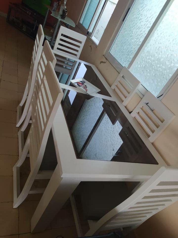 Juego de comedor de roble y cristal de 7 sillas - $1,100