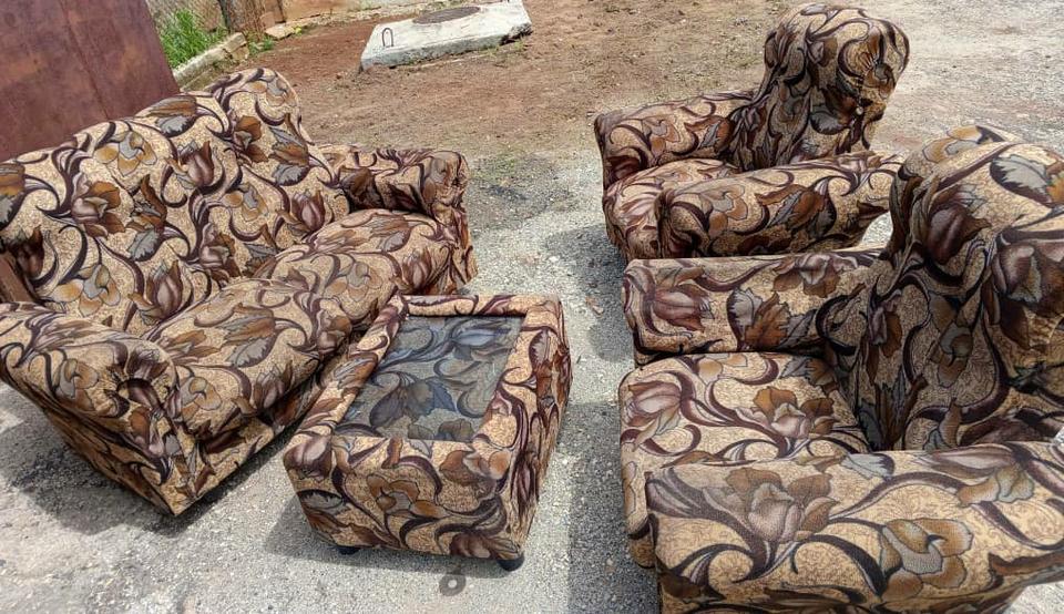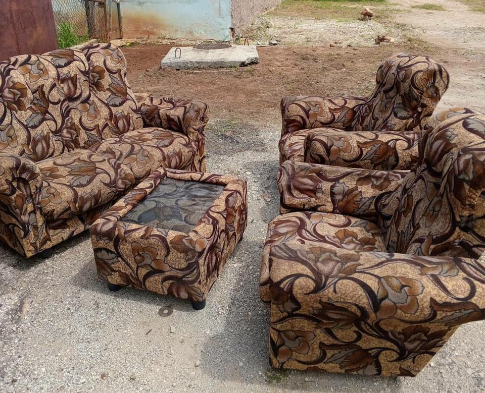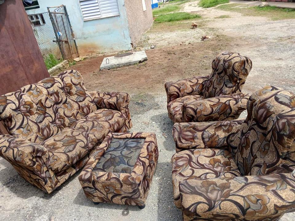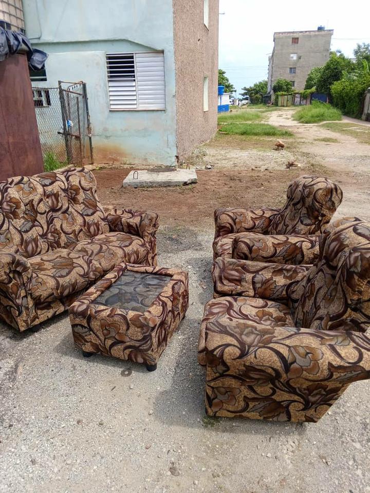 Vendo sofá con butacones y mesa centro en 100 USD o al cambio.