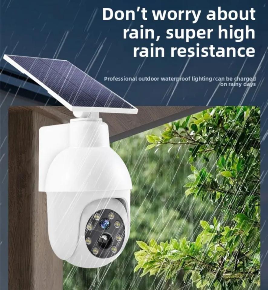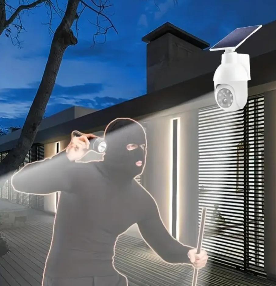 Lámpara solar Tipo cámara, con sensor de movimiento. Al detectar presencia LED rojo parpadea tal y como si estuviera grabando